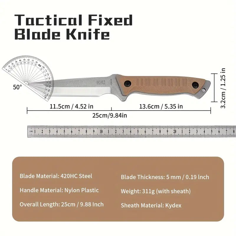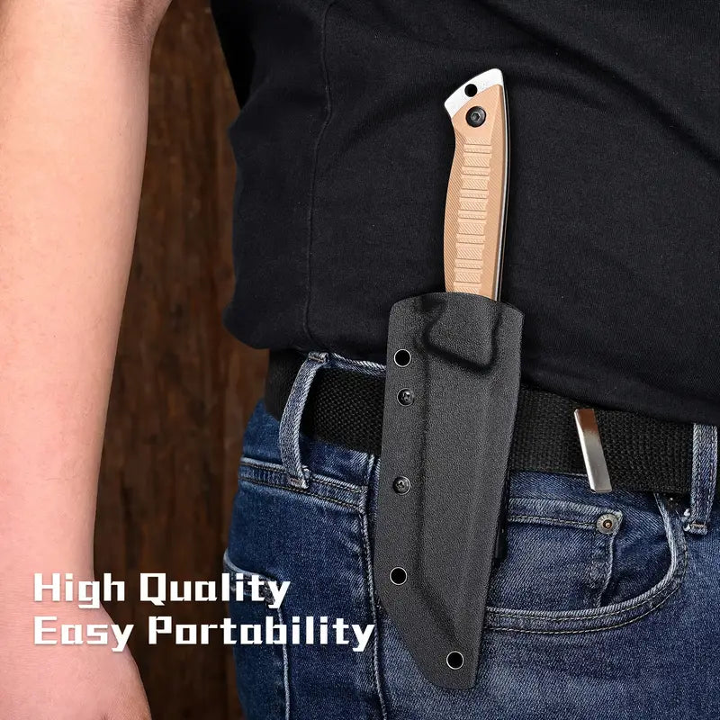 KHU 23A Stainless Steel Camping Knife – Durable Fixed Blade with Ergonomic Nylon Handle and Kydex Sheath, Khaki – Outdoor Adventures, Hunting, and Camping Gear