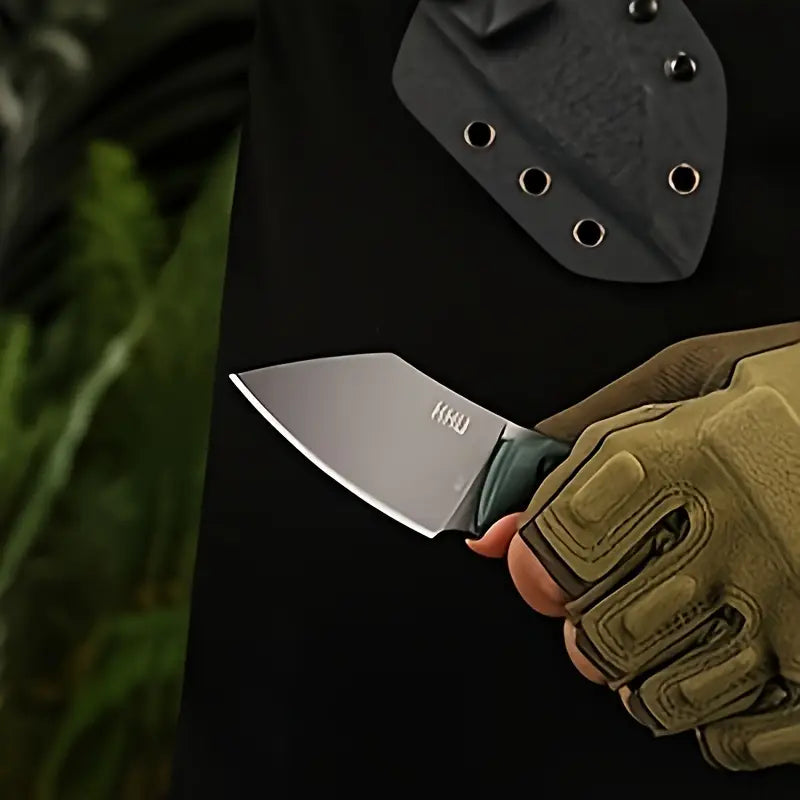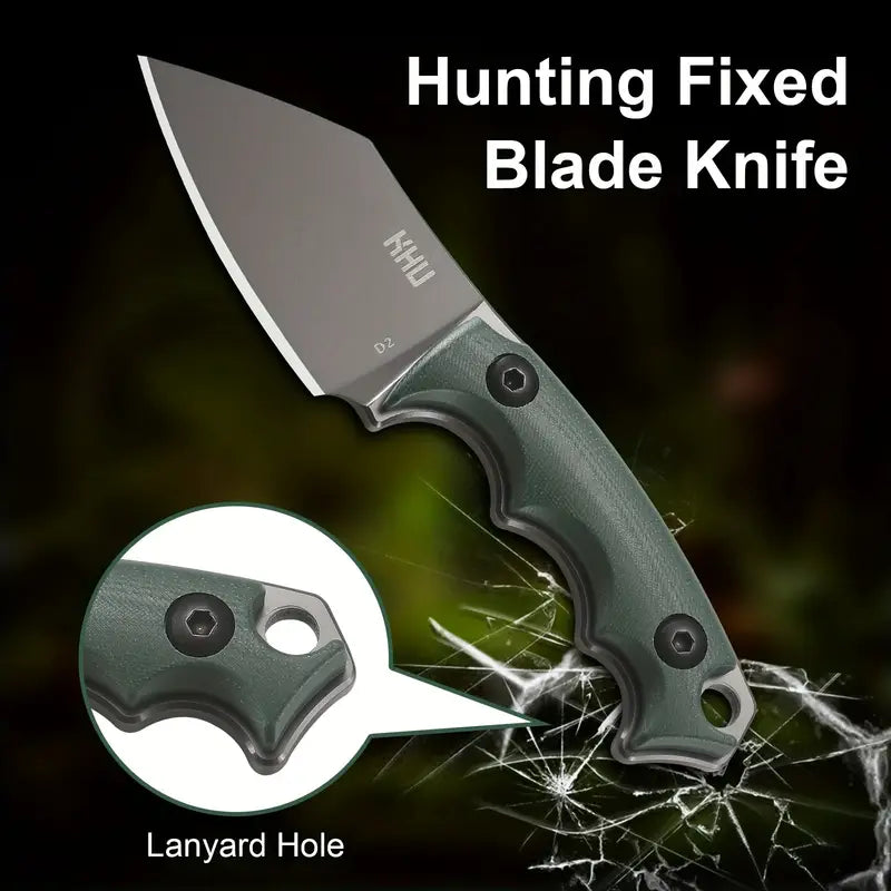The KHU Fixed Blade Hunting Knife (Model 21A) is designed for durability and performance. Featuring a razor-sharp D2 steel blade known for its toughness and edge retention, it ensures reliable cutting in various outdoor tasks. The ergonomic G10 handle offers a secure, non-slip grip, enhancing comfort during use. Accompanied by a custom-molded Kydex sheath, this knife provides safe and convenient carry options. Ideal for hunters, campers, and outdoor enthusiasts seeking a dependable tool for their adventures.