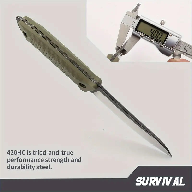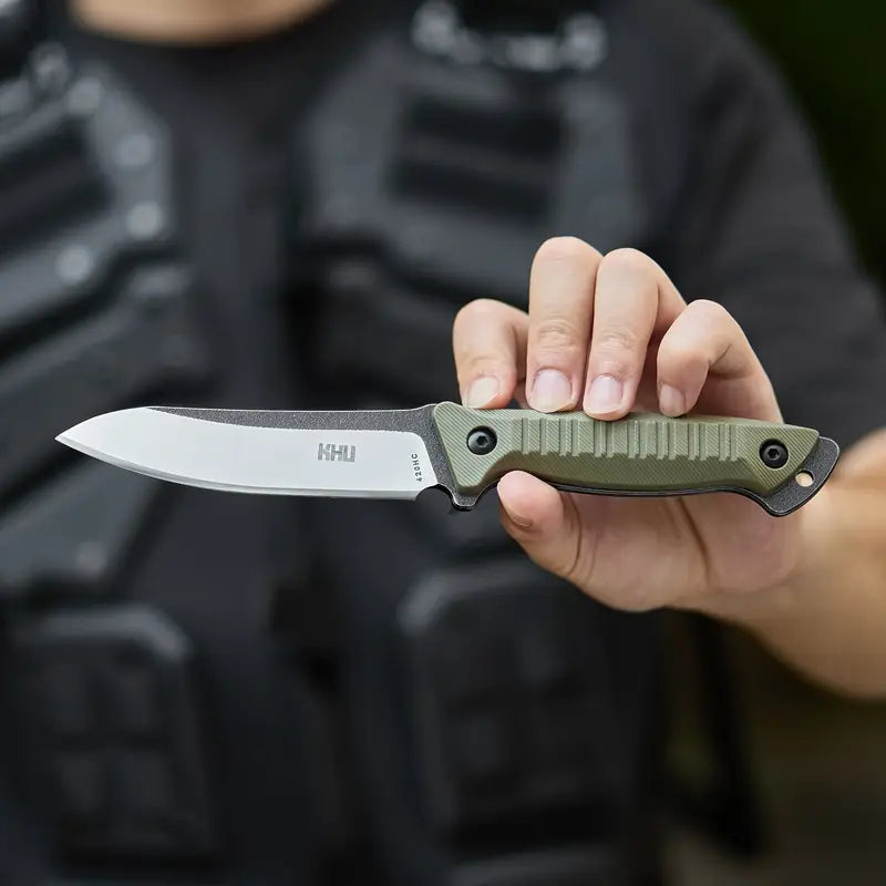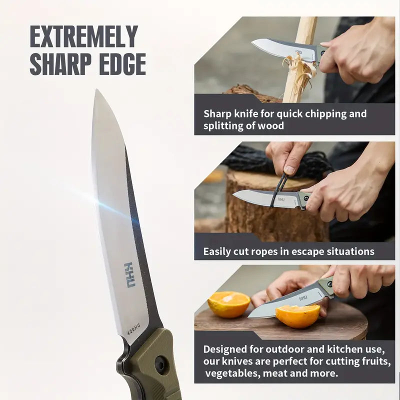 The KHU fixed blade hunting and survival knife features a durable 420HC steel blade with a comfortable nylon plastic handle for precision and strength. Complete with a secure Kydex sheath, it is ideal for hunting, camping, and outdoor adventures, offering reliability, rugged performance, and versatility for all wilderness activities.