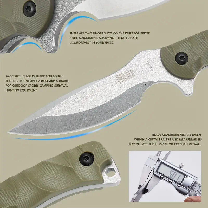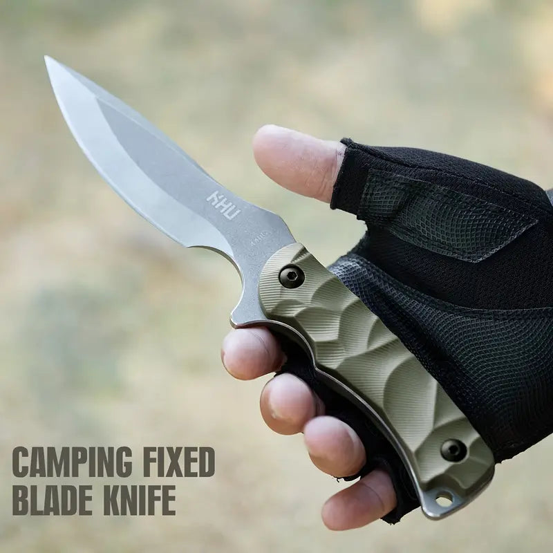 The KHU fixed blade hunting and survival knife features durable nylon plastic and steel construction with an ergonomic G10 handle for reliable grip and precision. Complete with a Kydex sheath, it is perfect for outdoor adventures, camping, and hunting, delivering rugged performance, safety, and versatility for all your wilderness needs.