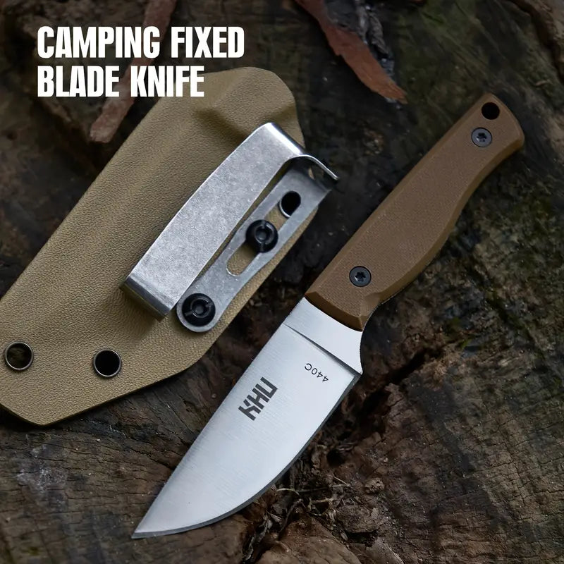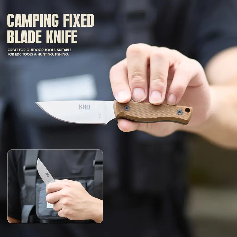 KHU Mini Fixed Blade EDC Knife - 440C Steel, G10 Handle, Kydex Sheath for Hunting & Camping