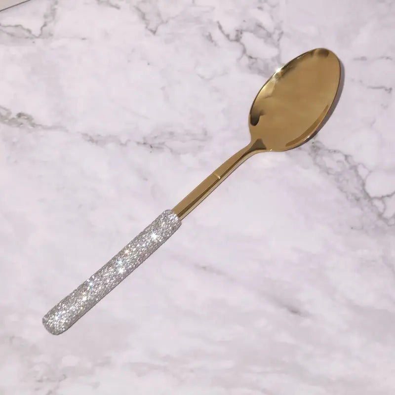 Elevate your dining experience with this exquisite Diamond-Studded 304 Stainless Steel Cutlery Set. Featuring a stunning mirror finish, this luxurious cutlery set adds a touch of elegance to any table setting. Crafted from premium 304 stainless steel, the utensils are not only durable and rust-resistant but also boast a sophisticated design, complete with sparkling diamond accents that enhance their beauty.