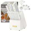 McCook 26-Piece Kitchen Knife Set with Block, Built-in Sharpener & Measuring Tools – White