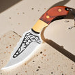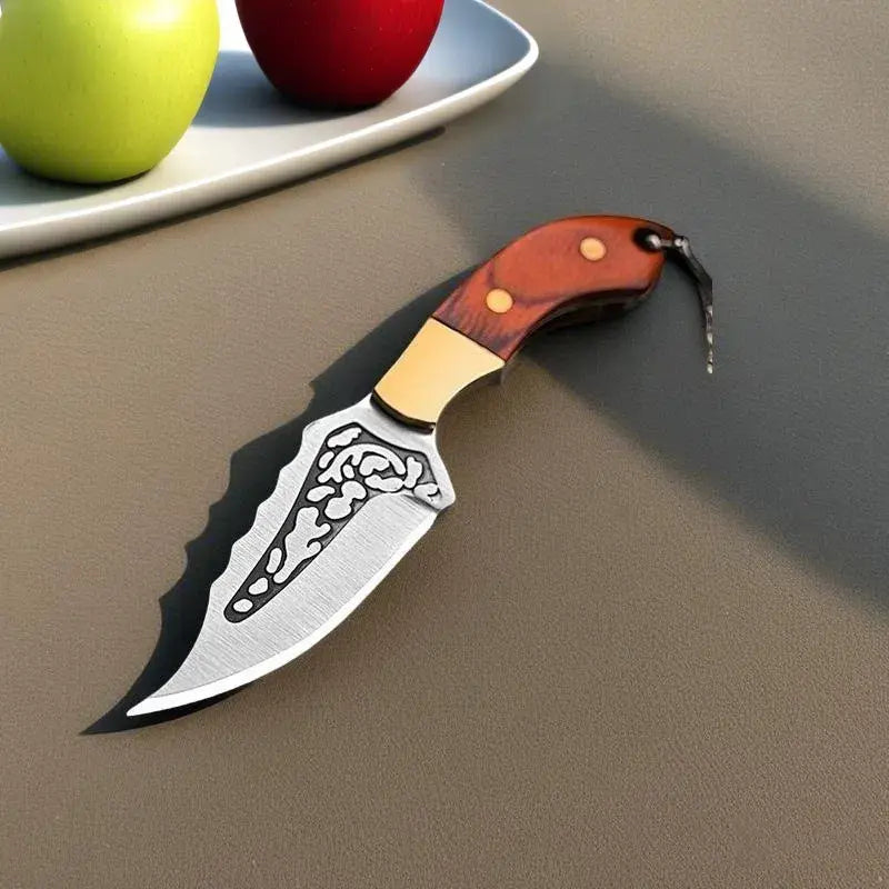 This set of mini straight knives features brass and colored wood handles, perfect for barbecuing and outdoor cooking. Compact and easy to carry, each knife comes with a leather sheath and can double as a portable keychain. Ideal for those who enjoy outdoor adventures, these small knives are both practical and stylish for any cooking enthusiast on the go.
