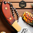 Mini Brass & Colored Wood Knives Set with Leather Sheath – Portable Keychain for Outdoor BBQ & Cooking