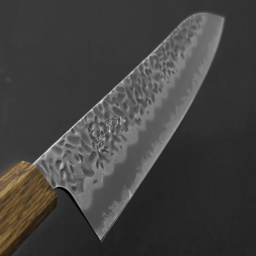 The OUL White #1 240mm (9.4") Hammered Tsuchime Knife is a high-quality, handcrafted Japanese chef's knife. Its durable White #1 steel offers exceptional sharpness, while the beautiful hammered (tsuchime) finish enhances both performance and aesthetics. With a 240mm blade length, this knife is perfect for tackling a variety of kitchen tasks, providing precision and comfort with every cut. Ideal for professional chefs and cooking enthusiasts alike.