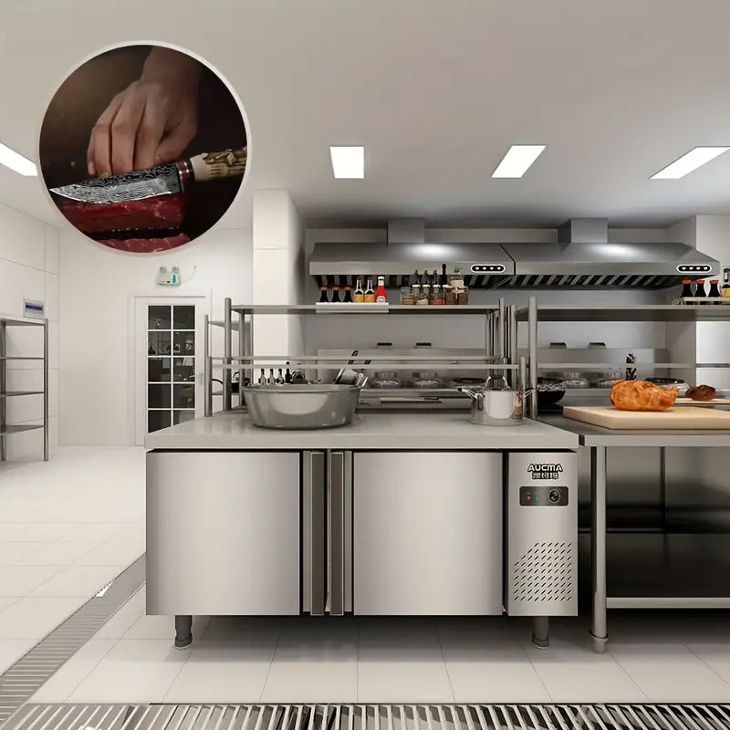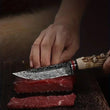This outdoor-forged stainless steel mini carving knife is a versatile kitchen tool, perfect for detailed cutting, carving, and prepping. Its compact design makes it ideal for both kitchen use and outdoor activities, while the included holster ensures easy carrying and safe storage. A durable, sharp knife for all your cooking and carving needs.
