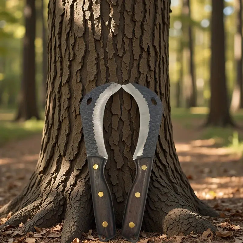 Outdoor Forging Sickle & Knife Set - Portable Hammer Sickle, Skinning Knife, Machete, and Camping Tools with Cover