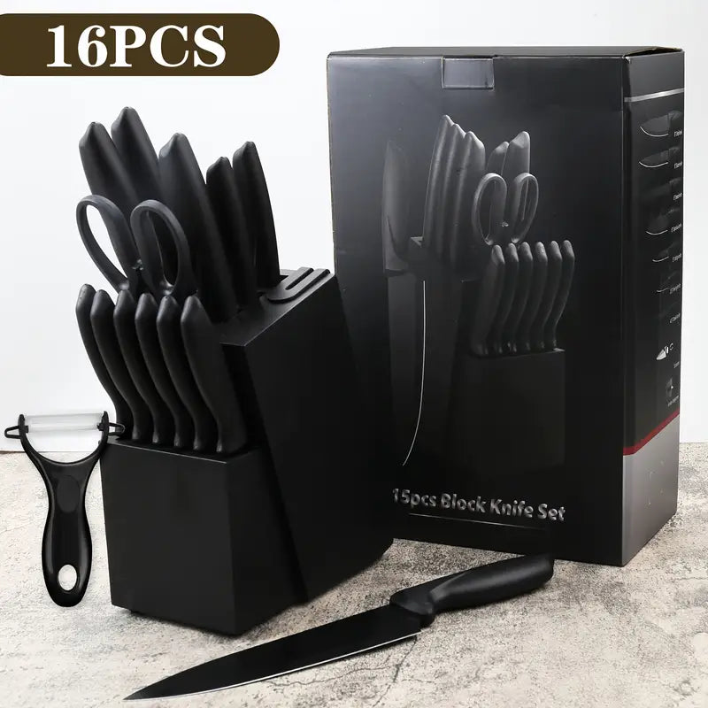 Professional 14/16-Piece Kitchen Knife Set with Wooden Block & Sharpener