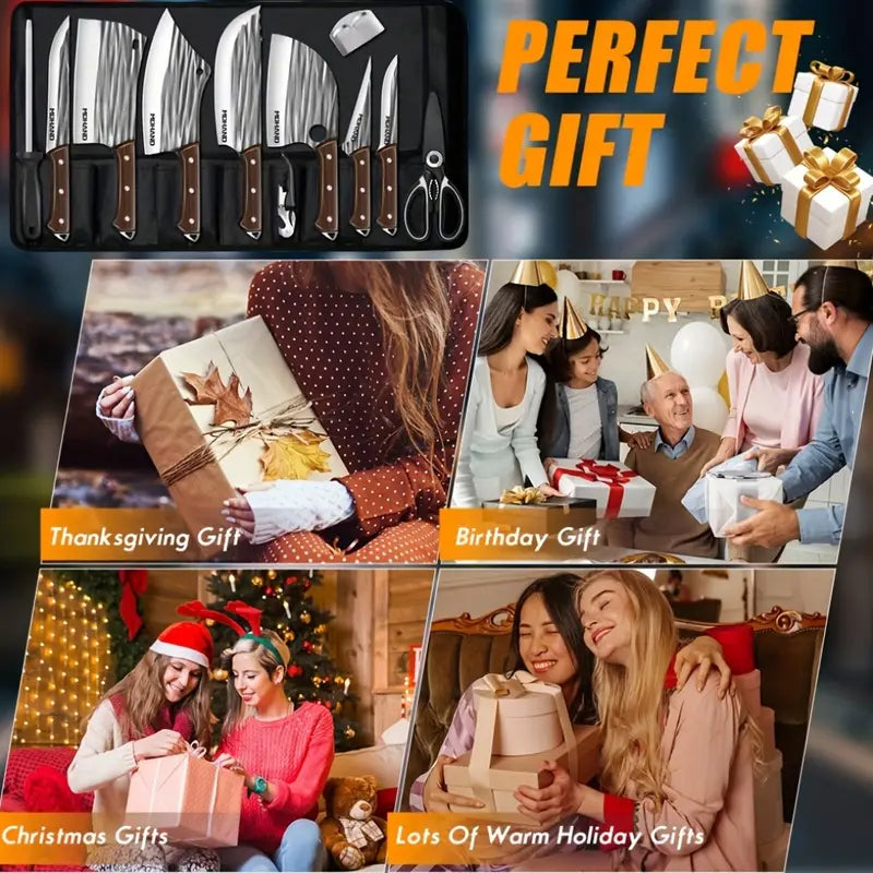 Upgrade your kitchen with this Professional 14-Piece Chef Knife Set, designed for both home cooks and culinary enthusiasts. Crafted from high carbon stainless steel, each knife delivers ultra-sharp precision for effortless slicing, dicing, chopping, and carving.