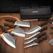 Professional 14-Piece Chef Knife Set with Roll Bag – High Carbon Stainless Steel Knives with Ergonomic Wood Handles for Meat, Fruit & Vegetable Cutting
