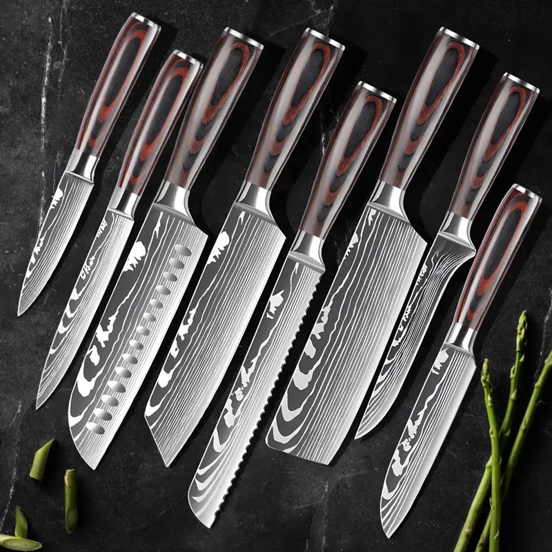 Professional 4/8-Piece Chef Knife Set – High Carbon Stainless Steel with Ergonomic Pakkawood Handle