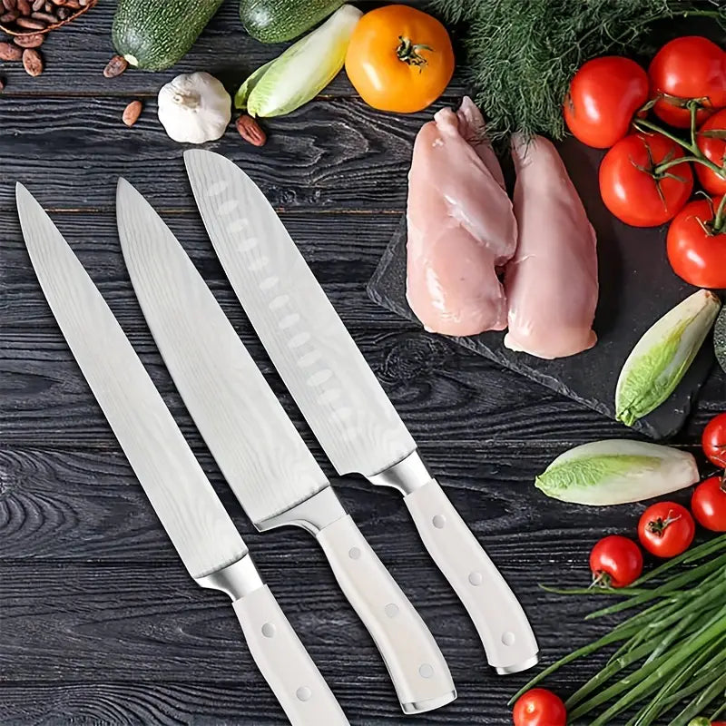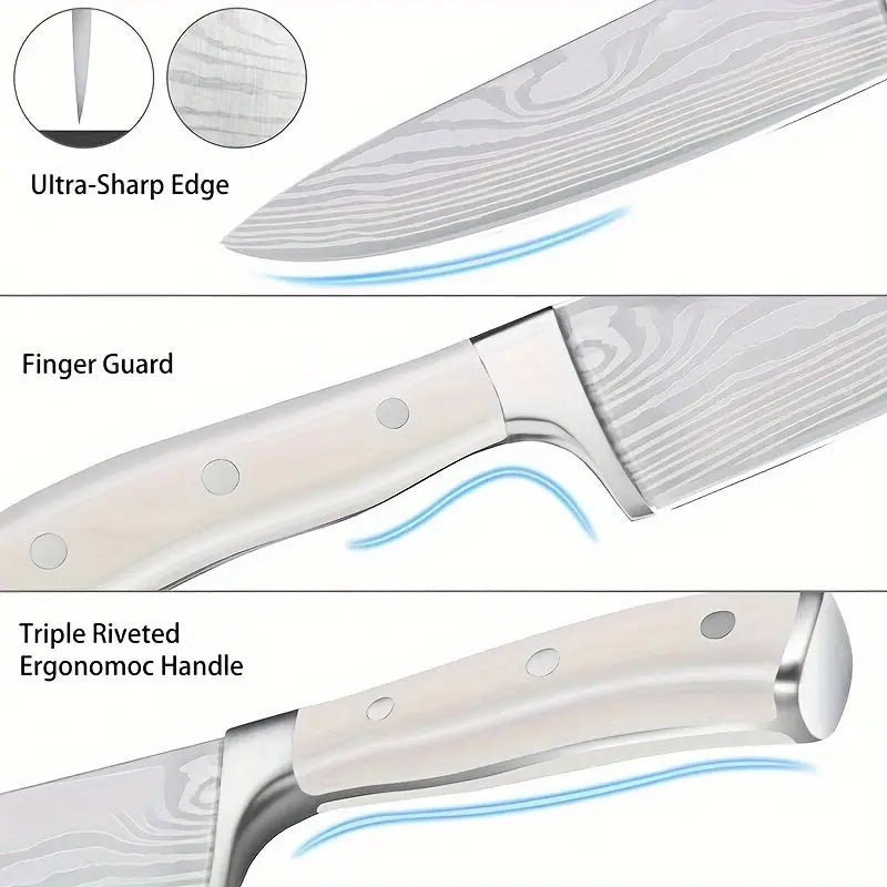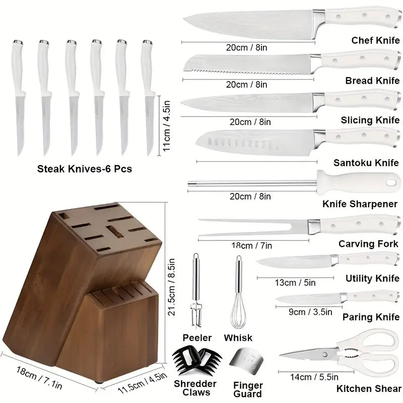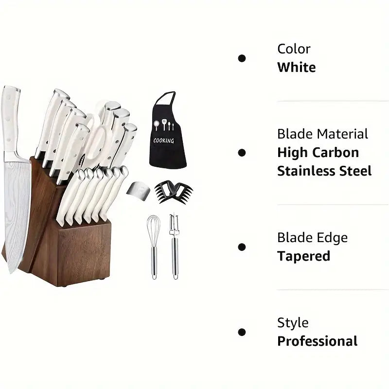 Upgrade your kitchen with this premium German high-carbon stainless steel knife set. Featuring ultra-sharp, full-tang blades and a stylish wooden block, this professional chef knife collection ensures precision, durability, and comfort for all your cooking needs. Perfect for home chefs and culinary enthusiasts alike.