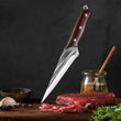 This professional hand-forged butcher and boning knife is crafted from high-quality stainless steel, designed for precision cutting, carving, and boning. Its sharp, durable blade ensures effortless slicing of meats and vegetables, making it a versatile tool for any kitchen. Ideal for cooking enthusiasts, it offers convenience and efficiency in food preparation.