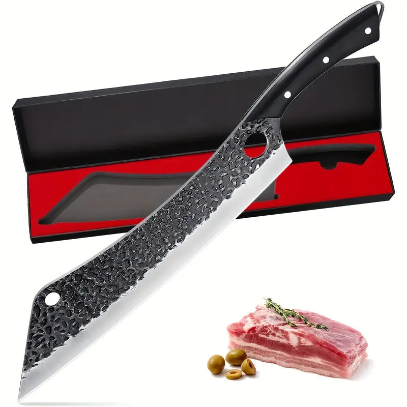 The Purple Dragon hand-forged chef's knife features a sharp, durable carbon steel blade designed for precision cutting. Its ergonomic handle ensures a comfortable grip, making it ideal for both professional chefs and home kitchens. Combining sleek kitchenware design with high-quality craftsmanship, this knife is a must-have culinary tool.