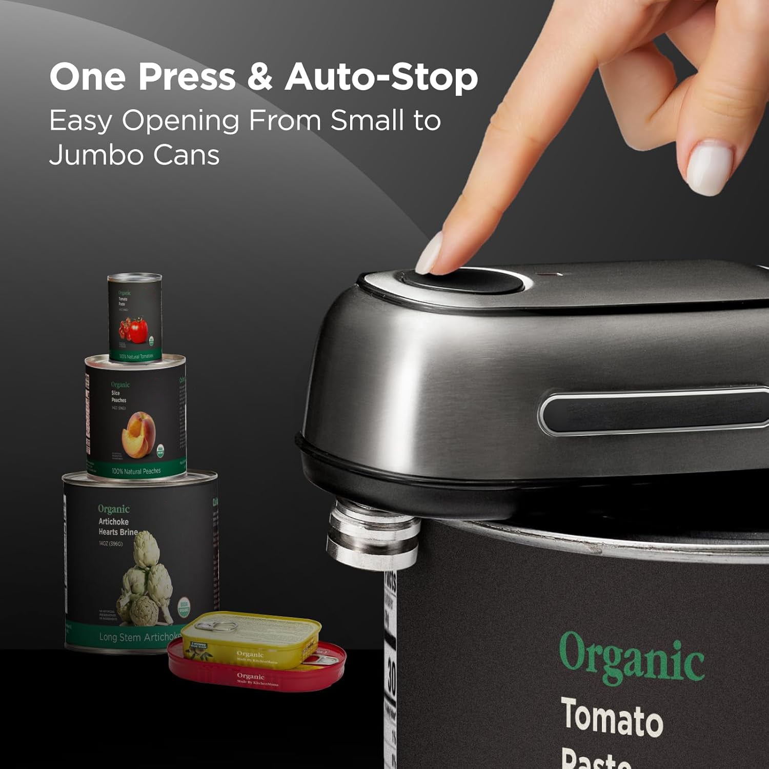 - Hands-Free Automatic Operation: Opens cans at the push of a button with auto-stop function for safety.