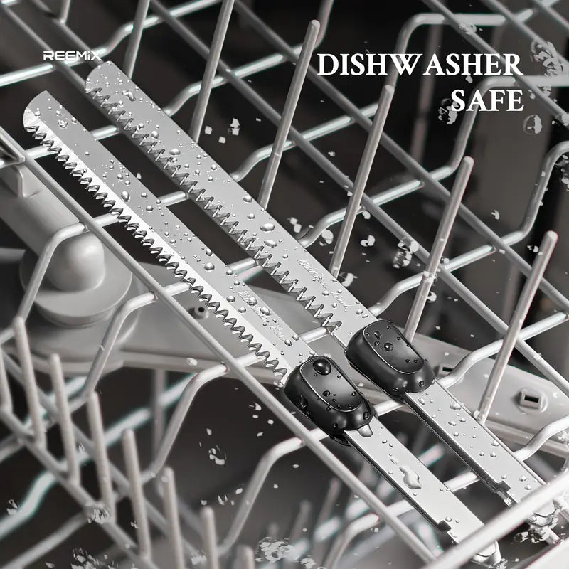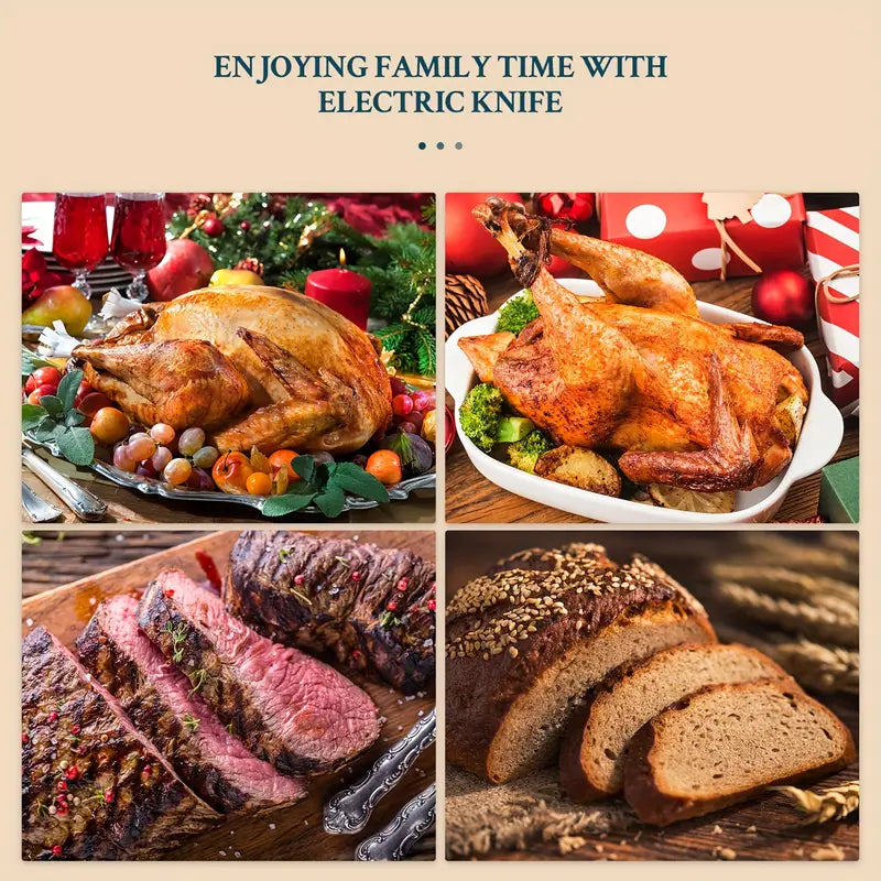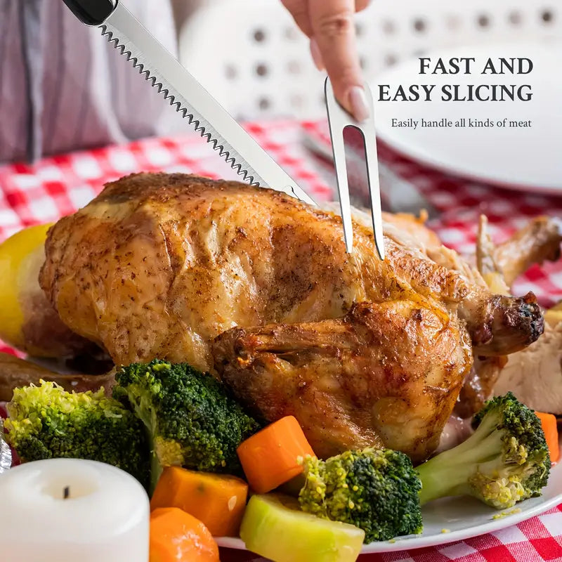 The Reemix Electric Knife Set is designed for effortless carving of meats, poultry, and bread with its 150W powerful motor. The sleek white handle ensures a comfortable grip, and it comes with two sharp carving blades and a convenient serving fork for precision cuts every time. Perfect for home chefs who want efficiency and ease in meal preparation.