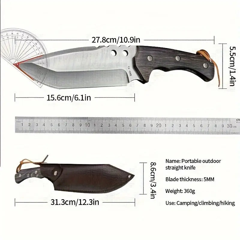 This rugged 6.14" fixed blade knife is crafted with durable stainless steel and features an ergonomic wooden handle, making it the perfect tool for camping, fishing, BBQs, and travel. Its sleek design and sturdy build ensure reliable performance in any outdoor setting, making it an excellent gift for dads, husbands, or outdoor enthusiasts. Whether you're preparing food, cutting rope, or tackling tasks around the campsite, this versatile knife is your ideal companion.