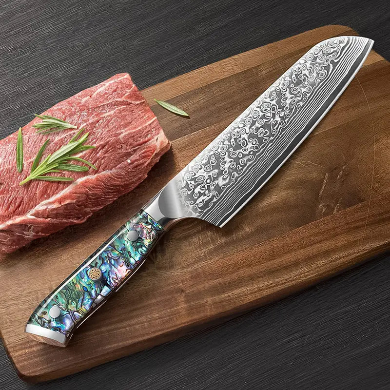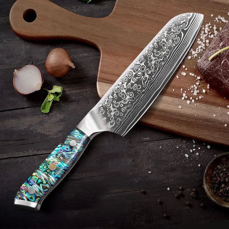 Santoku 7" Chef Knife – 67-Layer Damascus Steel, Abalone Shell Handle, Gift Box