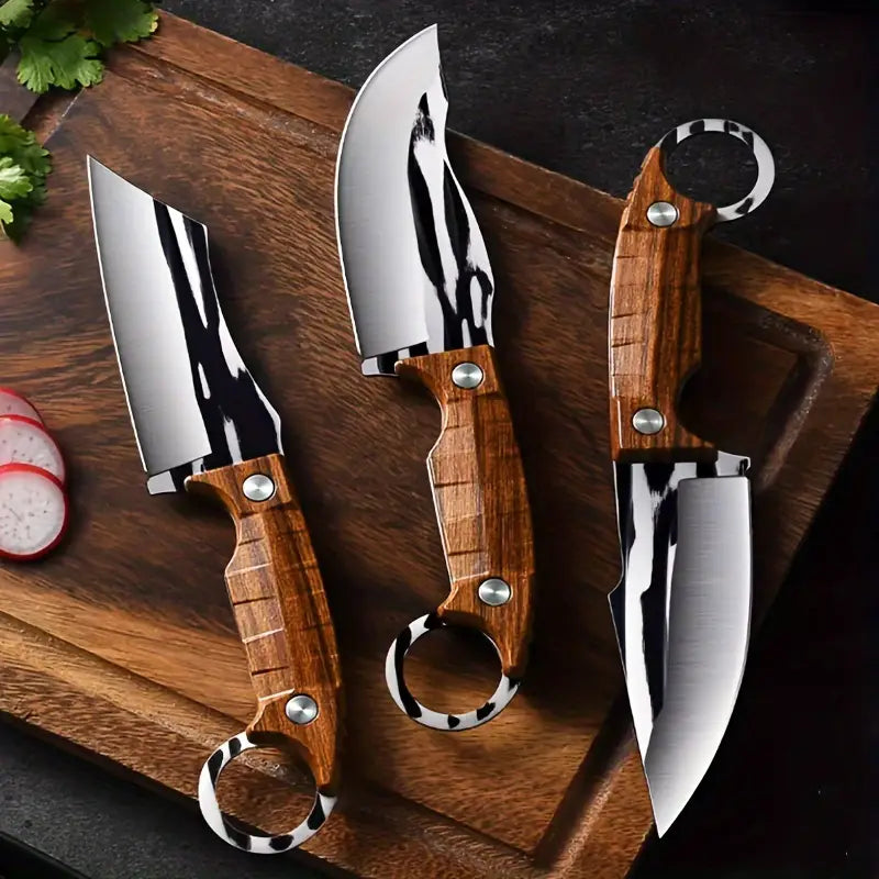 Set of 3 High-Quality Knives – Ultra-Sharp Stainless Steel Fixed Blades | Boning, Utility & Pocket Knife for Meat, Fruits, Camping, BBQ & Outdoor Use