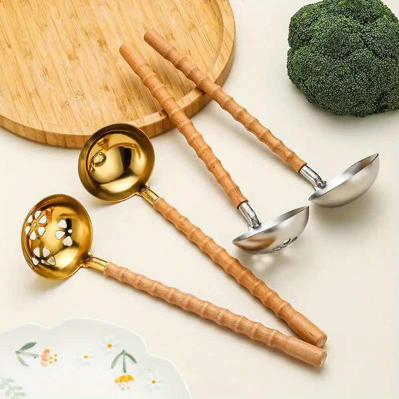 Stainless Steel Soup Spoon Set - 2pcs/1pc Creative Handle, Deep Ramen Spoon & Multifunctional Hot Pot Ladle with Strainer