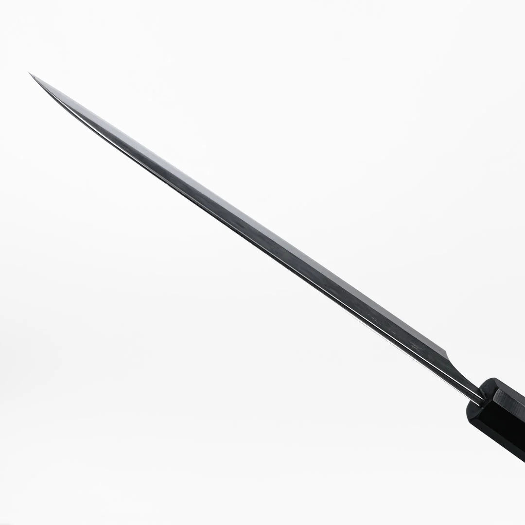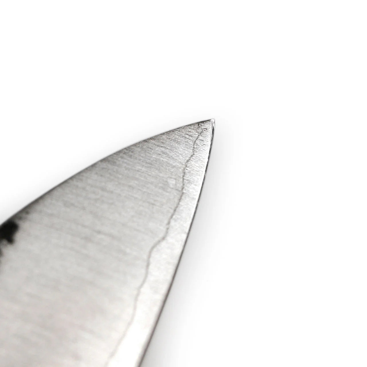 The Super Kurouchi Gyuto 210mm (8.2") is a premium Japanese chef knife designed for precision and durability. Featuring a beautifully crafted Kurouchi finish, this knife combines traditional Japanese craftsmanship with modern functionality. Its 210mm blade length offers the perfect balance for slicing, dicing, and chopping, making it ideal for professional chefs and home cooks alike. The razor-sharp edge ensures effortless cutting, while the ergonomic handle provides a comfortable grip for extended use.