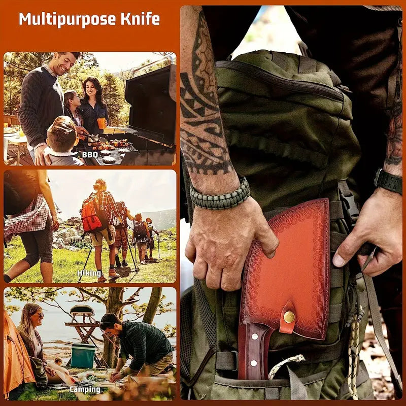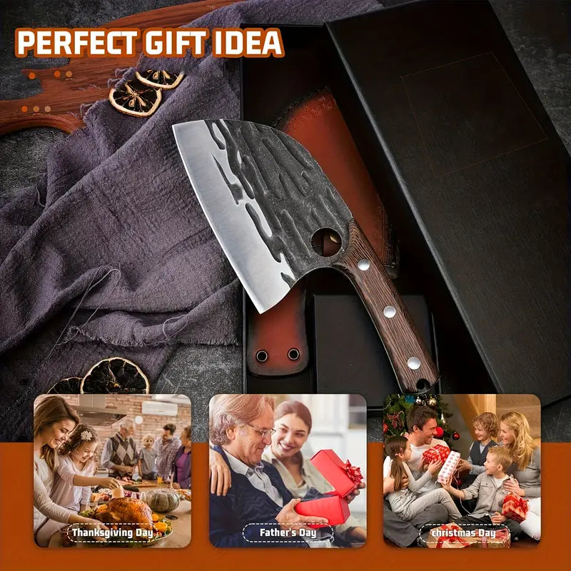 Upgraded Serbian Chef Knife – Hand-Forged Meat Cleaver with Sheath, Full Tang for Kitchen & Outdoor Cooking