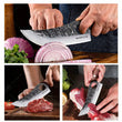 Upgrade your kitchen and outdoor cooking experience with the WAKOOKA 3-Piece Chef Knife Set. Crafted from premium Japanese steel, each knife features a stylish Viking-inspired design with hammered blades for precision cutting. The set includes a boning knife, BBQ knife, and utility knife, all with comfortable wooden handles, making it perfect for home cooking, camping, or outdoor adventures.